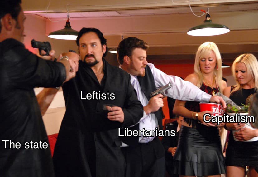 Most leftists are actually pretty weak on the state, from Noam “I’d like to see the power of the federal government increased” Chomsky downward. It’s like medieval peasants who thought the king was going to save them from the landlords. Most libertarians are terrible on capitalism: “The state shouldn’t exist but state-chartered corporations are wonderful.” […]